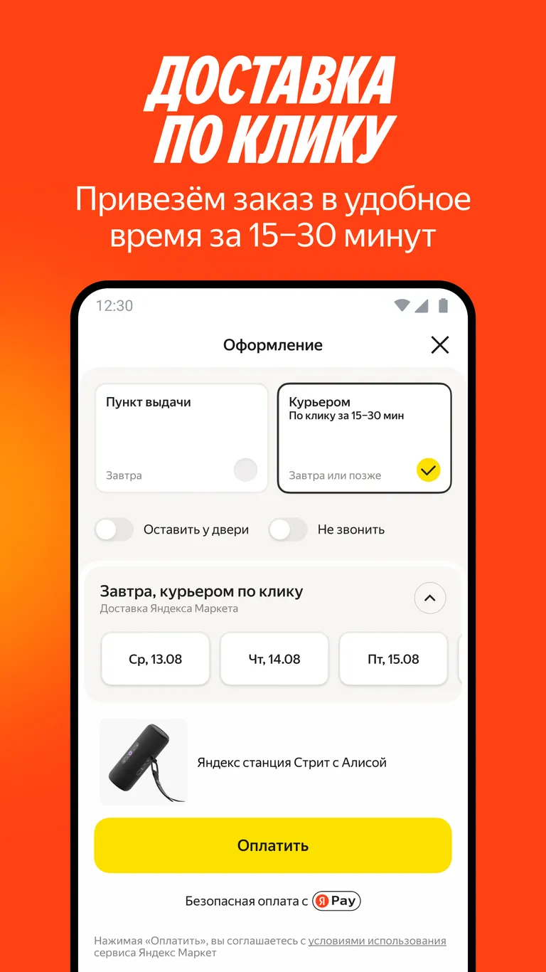Сервис предлагает невероятно гибкие условия получения товаров. Вы можете выбрать бесплатную доставку на дом или в один из многочисленных пунктов выдачи. А уникальная услуга «доставка по клику» позволяет вам самим решать, когда забрать подготовленный заказ. Это идеальное решение для тех, у кого ненормированный график или кто не любит ждать курьера.